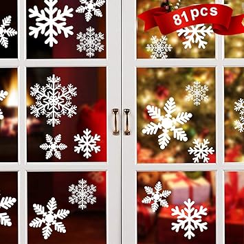 81pcs Christmas Ornaments Snowflakes Pvc Snowflakes Window Stickers Pictures For Christmas Decoration Diy Window White Snow Sticker Winter Decor For